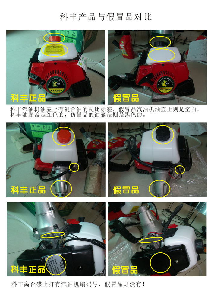 2、看“装置”,正规厂家产品一般都配有齐全的工具、常用配件、合格证、使用说明等随即文件,外观有发动机的型号、编