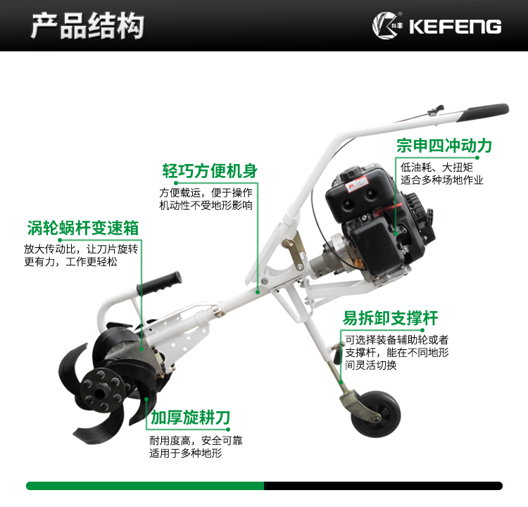 ■ 宗申四冲程引擎,低油耗,大扭矩适合多数场合作业。