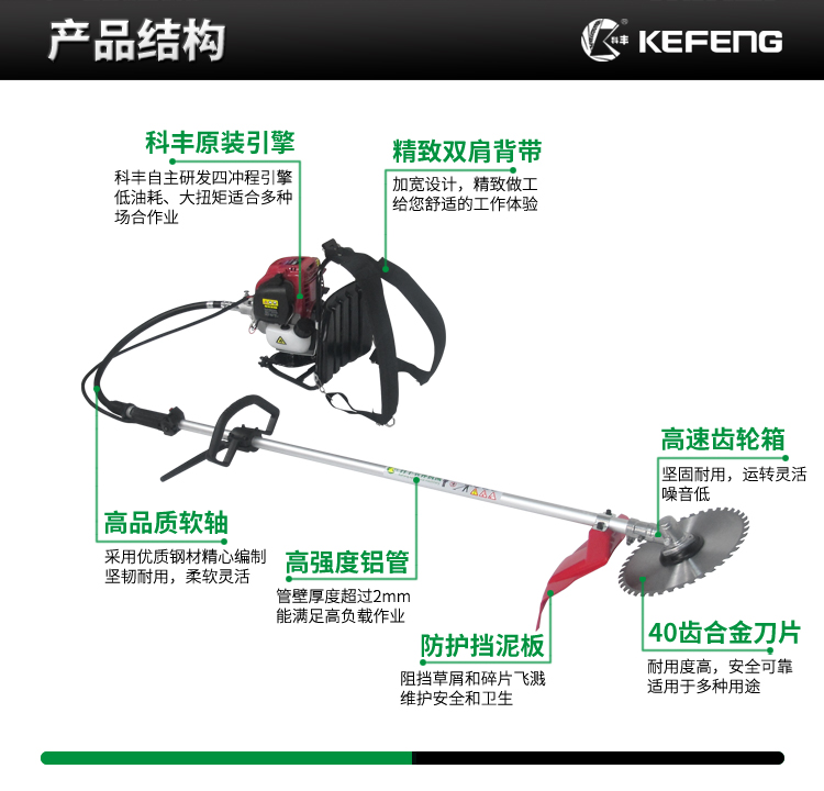 ■ 科丰四冲程引擎,低油耗,大扭矩适合多数场合作业。