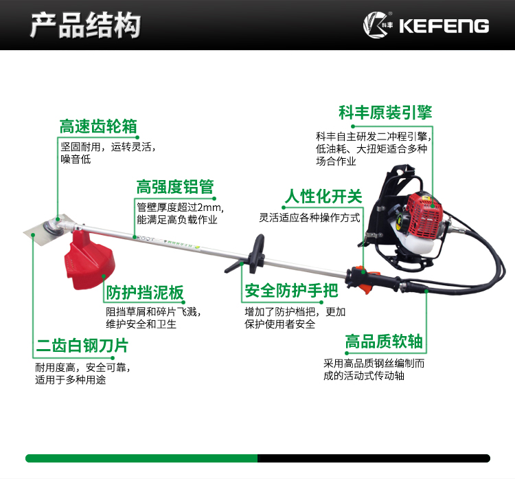 ■ 科丰二冲程引擎,低油耗,大扭矩适合多数场合作业。