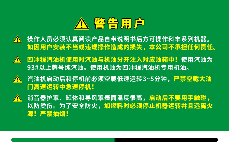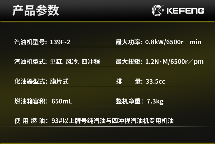 ■ 科丰四冲程引擎,低油耗,大扭矩适合多数场合作业。