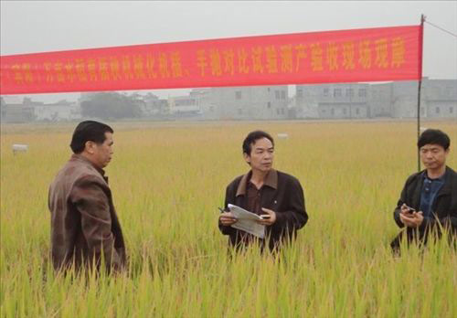 11月8日上午,广西宾阳县人民政府组织区、市、县农机专业以及宾阳县农业局、科技局、统计局、财政局等有关专家对广西南宁(宾阳)万亩水稻育插秧机械化示范区建设项目(晚稻)中心示范区古辣镇刘村村委刘村屯机插、手抛对比试验田垌进行测产验收,测产验收工作严格按有关规程和步骤进行,工作开展十分顺利,收到了很好效果。