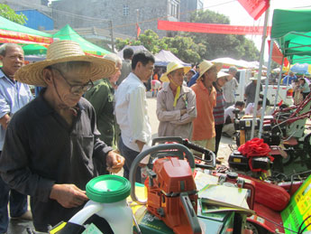 趁各乡镇的赶集日,广西农机推广总站和防城港市农机局等分别在活动现场设立农机化新技术、购机补贴、农机法规、农机安全咨询台,进行了国家购机补贴政策、农机化新技术、新成果、先进适用机具宣传和展(演)示。期间还组成了13辆农机大蓬车队,从峒中关口出发,利用扩音器进行一次沿着100多公里的边境公路给边民流动式的宣传,有6个从越南过来务工的农民看了机具整体结构布局和漂亮的外观,也竖起了大拇指,连连说好!有3个越南边贸商人对经营中国的农机产品十分感兴趣,与桂林科丰等公司相互递交了联系电话。